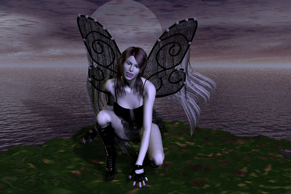 En älvvampyr, eller nåt. Gjort med hjälp av Bryce, Poser och Photoshop.